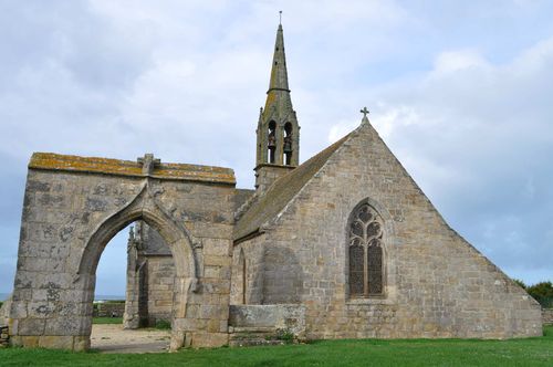 Je suis à deux pas de Penhors . Et me dirige bientôt vers sa pointe sauvage, royaume des surfeurs car les vagues sont nombreuses. Là, isolée dans la lande, se trouve la chapelle de Penhors. Juste à côté se trouve un calvaire breton. Cette chapelle est citée dans le roman de Pierre Jakez Hélias « Le cheval d'orgueil ». On y célèbre un pardon, chaque année, et ce depuis 1482, date à laquelle le Pape accorda des indulgences pour le grand pardon de Reims. Alors pourquoi pas Penhors? Elle en a vu cette chapelle: remaniée, attaquée par la foudre, la Vierge a toujours fait face! Déjà, au XIII ème siècle, il existait une chapelle à cet endroit. Ce n'est donc pas par hasard qu'on venait ici assister aux vêpres dès l'appel des cloches.