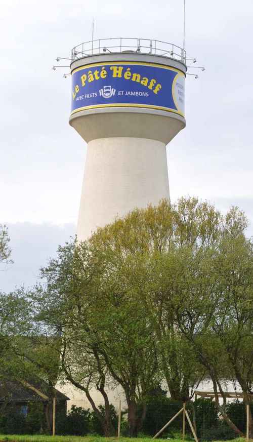 Soudain, j'ai une envie de pâté. Tiens, mais c'est bien sûr, c'est du Hénaff, le véritable, l'unique et le meilleur. Mais il me faudra revenir car le magasin et le musée ont fermés en ce dimanche matin. Pouldreuzic porte haut les couleurs de l'entreprise à qui elle doit (presque) tout. Voyez plutôt ce château d'eau.