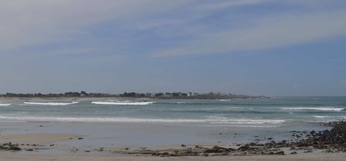 Un peu d'évasion et d'air iodé. La Pointe de la Torche , rendez-vous des surfeurs, est toute proche, le soleil brille désormais et le temps est clément. D'un côté, je reconnais Audierne ( première photo), de l'autre, Penmarc'h ( deuxième photo).