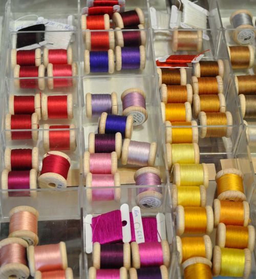A Quimper, la mercerie Guillaume vend les fils de soie utilisés pour la broderie des costumes bretons ainsi que des nappes et napperons.