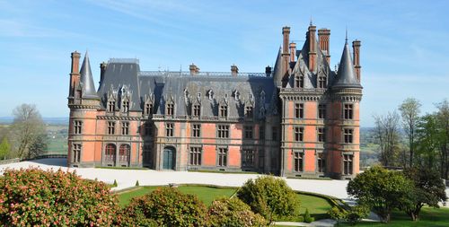 A Saint Goazec (Finistère) se trouve le château de Trévarez. Inscrit sur la liste des monuments historiques depuis juin 2009, on le surnomme « château rose » ou château rouge, à cause de la couleur des briques qui entrent ( avec le granit de Kersanton) dans la composition de ses murs. C'est l'un des derniers châteaux construits en France, puisqu'il fut édifié sur les hauteurs des Montagnes Noirs (Menez Du) fin XIX-XX èmes siècles (de 1893 à 1907), par l'architecte Walter-André Destailleur, à la demande de James de Kerjégu , président du Conseil Général du Finistère. Le château bénéficie de toutes les innovations d'alors: chauffage central, eau chaude à tous les étages, ascenseur, toilettes modernes...Profondément humaniste, James de Kerjégu fit même profiter ses domestiques de toutes ces commodités. Il mourut malheureusement peu après la fin des travaux et ce fut sa fille, Françoise et son mari, le Marquis de la Ferronays, qui logea au château.
