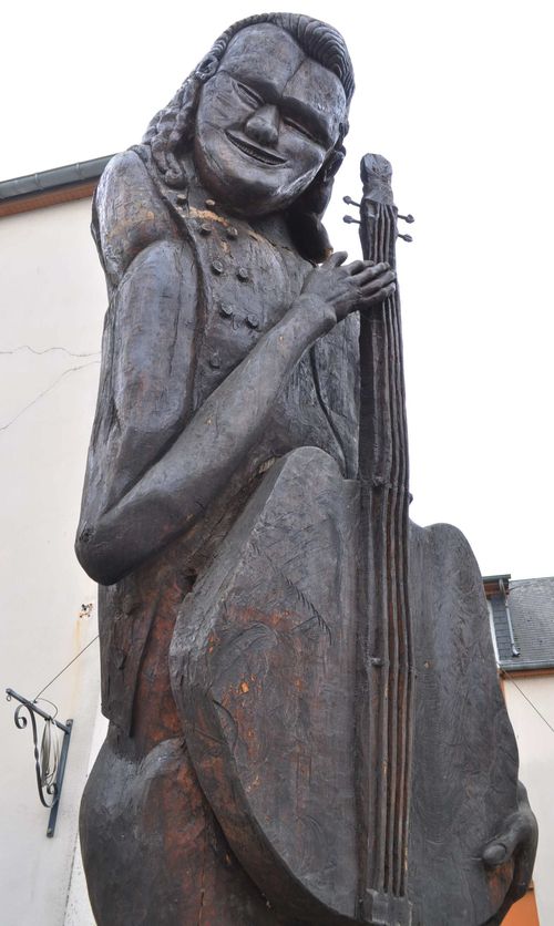 A un carrefour, je remarque une sculpture géante. « Qu'est-ce qu'elle a ma gueule ? ». La mienne, rien, mais celle de notre Johnny national est exposée à tous les vents en plein centre ville de Saint James. Un certain Maurice Bordier a eu l'idée de tailler un portrait du chanteur à partir d'un tronc de tremble , arbre abattu lors de la fameuse tempête de 1999. On peut , au travers de cette œuvre, admirer notre Johnny Hallyday en train de jouer de la guitare. Maurice Bordier a aujourd'hui 82 ans et est un autodidacte. Cette sculpture est sa première œuvre de sculpture monumentale. Mais notre homme se découvrira une passion pour le travail du bois dès l'âge de 14 ans, et se met à sculpter des petites pièces en 1962. Son style relève assurément de celui de la famille du célèbre Ferdinand Cheval, et l'artiste se plait à créer un art spontané et populaire. C'est « spontanément » qu'il réalisa cette sculpture « Qu'est-ce qu'elle a ma gueule ? » (c'est son nom) en l'espace de deux à trois mois. Maurice Bordier recherche ainsi à retransmettre une émotion au travers de son art. Serait-ce de l'art naïf? Naïf ou pas, on salue le talent d'un homme qui ne s'arrête jamais de travailler et qui a déjà en projet une nouvelle sculpture, celle (mais oui, je vous assure!) du Général de Gaulle, qui sera réalisée à partir d'un tronc de séquoia dont il a déjà fait l'acquisition. Notre Général en homme-tronc? Du jamais vu, mais à défaut de rester de marbre, notre grand Charles aura la gueule de bois,....tout comme Johnny! A suivre...