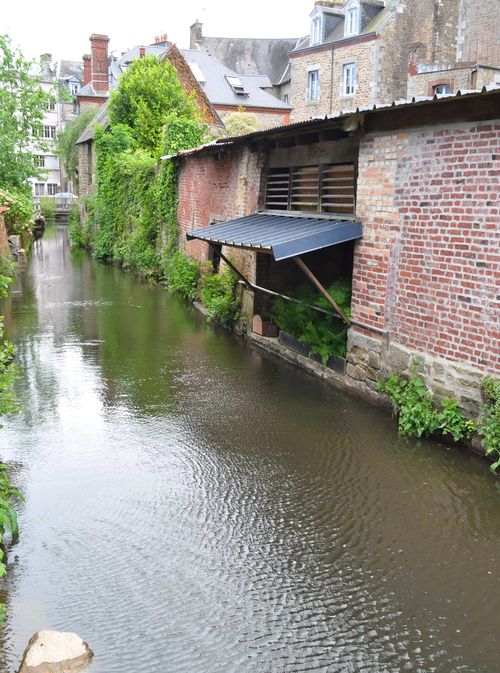 Sur mon itinéraire, je passe le long de la Sienne ou plutôt de son canal. Là se trouvent d'anciens lavoirs, très actifs autrefois. Au premier plan , on observe les restes de cinq de ces lavoirs ( qui devraient être bientôt restaurés). On trouve ainsi plusieurs lavoirs privatifs. Leur construction a pris essor au cours du XIX ème siècle pour combattre les grandes épidémies comme celle du choléra. En 1851, on débloqua même la somme de 600 000 francs d'alors pour la construction de lavoirs publics. Ces lavoirs étaient fréquentés chaque semaine par les petites gens, et trois fois par an pour effectuer ce qu'on appelait les grandes lessives. Ces grandes lessives duraient trois jours, nommées Purgatoire, Enfer ou Paradis. Le Purgatoire consistait à déballer le linge, à le laisser tremper un ou plusieurs jours, puis à couler le linge (en l'enfermant dans un grand drap accompagné de cendres de bois et de feuilles de laurier). Ensuite, le linge était savonné, battu et brossé. Un travail de longue haleine. La phase de savonnage du linge était surnommée le Paradis. Ce n'était pas forcément le septième ciel pour ces femmes qui restaient agenouillées quatorze heures durant dans leur carrosse (boite en bois). La Place du Pussoir fidèle possédait au fond un lavoir public où aucun drap ne fut jamais dérobé. D'où peut être l'origine du nom de cette place: Pussoir (lavoir) fidèle. Sur cette place se trouve l'Atelier du Verre où vous pourrez voir un artisan souffler le verre devant vous. Vous repartirez avec de superbes objets dont ces magnifiques fleurs de verre (photo ci-dessous).