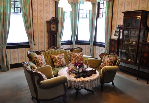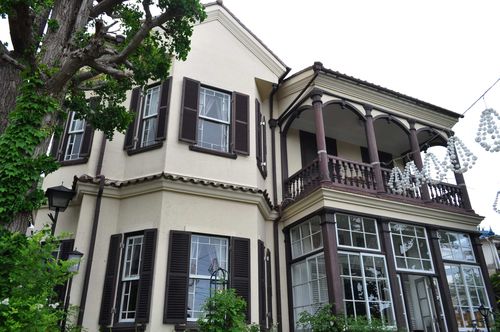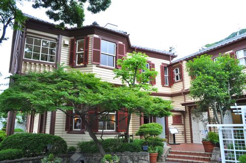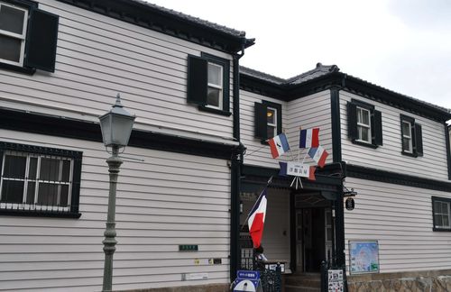 A l'angle de l'avenue Tenjinzaka et de la rue Kitano, j'aperçois l'ancien consulat du Panama: Construit durant la période Meiji, ses murs blancs avec ses touches vertes accrochent le regard. Un bâtiment séparé se trouvait à proximité et était destiné aux domestiques (pratique alors courante dans les demeures étrangères). Rien n'a bougé à l'intérieur: Salle du Conseil, salle à manger, salon et chambres ont gardé le même aspect. On imaginera alors la tenue de banquets avec ses riches invités, fraichement débarqués des bateaux de croisière accostés dans le port quelques heures auparavant.