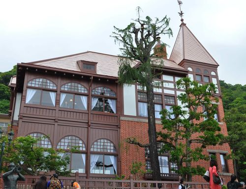 De l'autre côté de la rue Kitano, presque en face de l'ancien consulat, je m'arrête quelques instants à la England House (Maison de l'Angleterre) qui fut un temps la résidence d'un certain Docteur Fdesck. Une Rolls Royce un peu poussiéreuse trône dans le jardin à l'entrée. On profite d'une meilleure vue extérieure sur l'ensemble de la demeure par l'arrière (photo ci-dessous). La maison fut construite sous l'ère Meiji dans le style colonial, mélangeant le Baroque avec le style Victorien. L'intérieur est magnifiquement conservé:Des meubles et des objets anciens ainsi que des peintures donnent un avant goût de ce qu'était la vie anglaise à cette époque. Au premier étage, une reconstitution d'une pièce évoquant les enquêtes de Sherlock Holmes , le grand détective, vous replonge dans l'ambiance. Le soir, le bar « King of Kings » est un endroit très fréquenté ( photo).