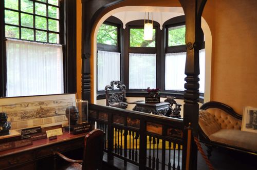 La maison possède une vaste entrée, un parloir, un salon, une salle à manger et un bureau (à droite en entrant) dont le plafond est en forme d'ombrelle (photo). Au deuxième étage se trouvent une salle où l'on prenait le petit déjeuner, la chambre des propriétaires ainsi qu'une chambre d'amis , et une nurserie.