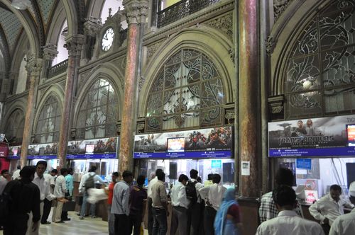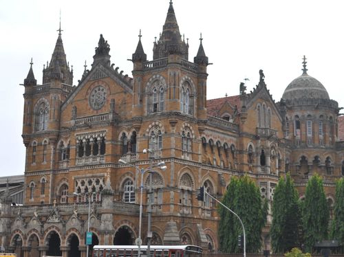 On retrouve dans cette gare un mélange d'architecture indienne et de style néo-gothique: Le Moyen âge italien s'exprime dans l'apparence générale de la construction tandis que les tourelles, le dôme de pierre et les arcs brisés rappellent les palais indiens traditionnels. Le souhait de l'architecte fut de faire appel à des artisans indiens pour incorporer la tradition architecturale indienne afin d'aboutir à la création d'un style typique de Bombay. Attiré par cette magnifique façade, je ne résiste pas au plaisir de pénétrer à l'intérieur. Et je découvre alors un plafond digne d'une église, des guichets de billetterie dignes d'une œuvre d'art sans parler des bois sculptés, ferronneries et céramiques. Le Chhatrapati Shivaji Terminus fut classé en 2009 la troisième plus belle gare au monde ( après la gare de Saint Pancras de Londres et le Grand Central Terminal de New York) par le magazine Newsweek. A ne pas manquer!