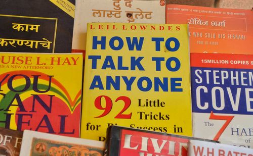 Nous filons ensuite à Church Gate, à la rencontre des dabbawalas, que je ne tarde pas à apercevoir. Je vous invite ( si ce n'est déjà fait) à lire mon reportage sur ces hommes surprenants qui livrent quotidiennement des milliers de repas , en temps et en heure, et sans perdre une seule gamelle ( enfin, presque , puisque l'on compte la perte d'une gamelle sur....16 millions!). Sur le chemin du retour, le taxi s'étant garé non loin de là, je passe devant un kiosque de rue où un gamin vend des livres. L'un d'eux attire mon attention: How to talk to anyone? Incroyable pays que cette Inde fascinante, remplie de vie et si accueillante.
