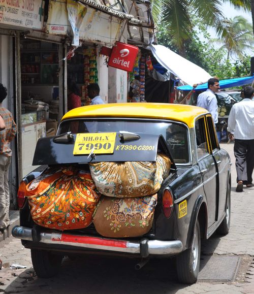 J'ai rendez-vous à 11h30 pour apercevoir les Dabbawalas ( porteurs de gamelles) à Church Gate. C'est là qu'ils arrivent, chargés de leurs butins qu'ils vont distribuer partout dans la capitale ( voir reportage sur le sujet). Le chauffeur de taxi me propose de me conduire au Crawford Market. Chiche! Surtout que ce n'est qu'à deux pas de la fameuse gare ferroviaire. Le taxi reste le moyen de locomotion idéal malgré la circulation. Surtout lorsqu'il est climatisé. Les prix se négocient car le chauffeur vous demandera assurément le prix maximum espérant profiter de l'aubaine offerte par le touriste étranger que vous êtes. Mais ne vous laissez pas faire. Le marchandage n'a rien d'indécent et fait partie du jeu. Comptez environ 100 roupies par heure ( une simple course coûte de 15 à 20 roupies) (voir infos pratiques).
