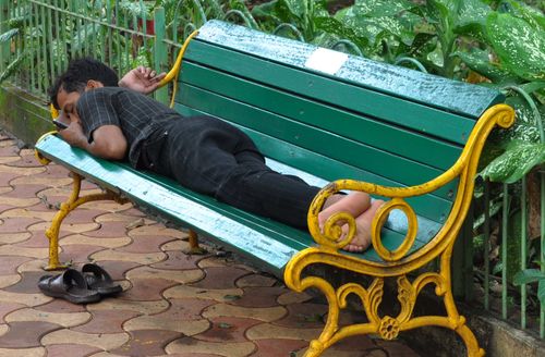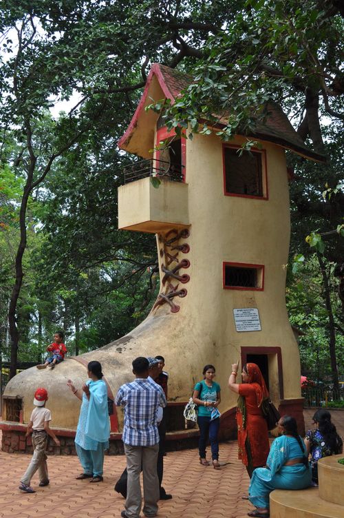Rajesh termine notre visite en me conduisant aux Hanging Gardens connus aussi sous le nom de Ferozeshah Mehta. Ils sont situés au-dessus de la colline de Malabar ( sur son côté occidental). Je m'attendais à autre chose, un endroit peut être mieux entretenu et plus fleuri mais nous sommes en Inde et on ne peut espérer ici des jardins taillés au cordeau avec la rigueur occidentale. Je me balade quelques minutes dans ce parc qui sert de lieu de détente à de nombreux habitants des lieux. Certains en profitent pour faire une sieste récupératrice tout en écoutant les dernières nouvelles à la radio (photo) , d'autres se livrent, en famille, à une séance photo devant l'une des attractions du moment, une grande botte(çà, c'est le pied!)(photo). De cet endroit, on a une vue superbe sur les quartier sud de la ville (photo ci-dessous)