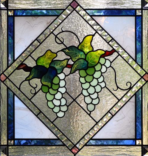Sur mon chemin, je croise une voiture conduite par une dame qui observe l'occidental marcheur que je suis. Quelques instants plus tard, la même voiture s'arrête à mon niveau (simple curiosité?) et Madame Masayo Kondo m'adresse la parole. Je rencontre ainsi, par le plus grand des hasards, la propriétaire des caves Kawachi. Je découvre rapidement que Madame Kondo parle un très bon français et donne même parfois des....concerts traditionnels japonais à Cancale (Bretagne). Incroyable! Madame Kondo m'invite alors à visiter le salon où elle a pour habitude de recevoir ses groupes de visiteurs afin de leur proposer une dégustation de ses vins, une magnifique salle avec de grandes tables est ornée de deux magnifiques vitraux suggérant le raisin (photo ci-dessous). Ce lieu jouxte sa maison qui possède par ailleurs un superbe jardin japonais. De l'autre côté de la rue se trouve la fabrique. Avec ses fûts et sa salle d'exposition des différents vins et liqueurs de la maison. Un rare instant de frais alors qu'il fait facilement 35° à l'extérieur...J'explique à Masayo Kondo qui je suis et ce que je fais. Nous nous rendons ensuite à la boutique-musée. Au rez-de-chaussée se trouvent les vins. Je goûte un vin blanc Chardonnay et lui trouve un joli goût fruité. Vendu! Puis, un vin rouge Médoc , puis un autre...Je ramènerai ainsi trois bouteilles de ma visite sur place! Kampai! (Santé! en japonais).