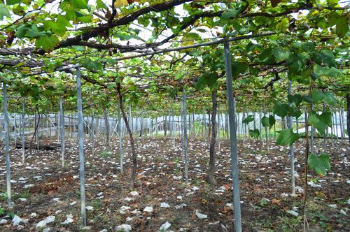 L'année dernière, lors de mon séjour chez les Suzuki, j'avais eu l'occasion de goûter à un vin rouge japonais mais l'expérience ne m'avait pas marqué: Le vin ressemblait davantage à un jus de fruit qu'à un alcool. Les Japonais sont pourtant friands de nos vins français, et sont même des connaisseurs. Je ne parle pas de leur engouement annuel pour le beaujolais nouveau (ce vin s'apparente pour moi davantage à un succès commercial qu'à un grand cru!) mais il possède des vins qu'il peut être intéressant de découvrir. Saviez-vous par exemple que le Japon cultive le koshu, une variété de raisin typiquement nippone: Cépage rose, il est très répandu dans le pays. Son exploitation remonte à la période Edo lorsque le Tokugawa l'utilisaient pour leur consommation personnelle en tant que raisin de table. C'est seulement vers 1800, sous l'ère Meiji, qu'on utilisa le koshu pour la vinification. Ce raisin donne un vin blanc qui se rapproche du Sauvignon blanc et convient parfaitement à la cuisine nippone. En remontant encore plus loin, on découvre que la vigne a été importée au Japon par les Missionnaires de la Compagnie de Jésus. La région viticole la plus connue est celle de Yamanashi et Osaka. Les vignes sont plantées à raison de 250 pieds par hectare , les ceps étant séparés de 6 mètres et conduits en hautain, afin de former des treilles ou des pergolas. Il est ensuite juste nécessaire de tendre le bras pour cueillir facilement les grappes situées en hauteur (photo ci-dessous).Une majorité de la production intérieure est constituée de vins mélangés et venus de l'extérieur du pays. Ces vracs sont faits à partir de raisins produits localement (comme le Koshu ou d'autres variétés européennes et américaines), mélangés avec des moûts et des vins importés à des jus japonais (présence de 5% minimum de vins issus de raisins cultivés au Japon). On évalue à 30000 hectares la surface de terres consacrée à la viticulture nippone et à 370000 hectolitres le volume de sa production.