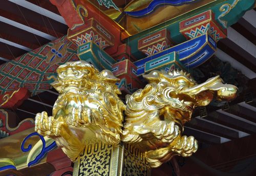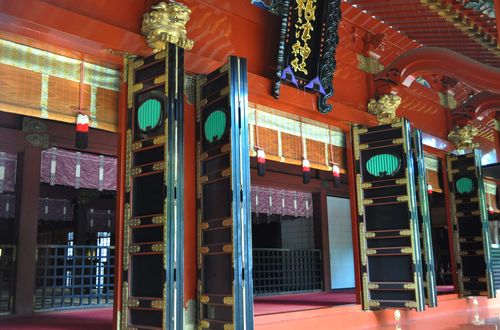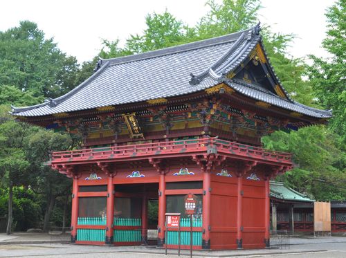 A la mort de Tsunayosi, c'est son neveu, Ienobu, qui prendra sa place en 1709 , comme 6ème Shogun. Celui-ci offrira alors au sanctuaire, six sanctuaires portables (mikoshi) et créera le Festival du Règne (Tenka Matsuri) qui a lieu fin septembre. Cette année, cette fête aura lieu les 18 et 19 septembre. Une excellente occasion pour découvrir un sanctuaire qui est désormais classé monument historique de par sa splendeur architecturale. En effet, le bâtiment, qui a été érigé dans le style Gongen-zukuri a été miraculeusement préservé. C'est effectivement le plus ancien bâtiment original de la capitale avec son hall principal, des deux portes et sa façade. Le Hall principal est recouvert de laque rouge , caractéristique du style Gongen-zukuri , tandis que la porte, elle, reflète le style bouddhiste. Qu'est-ce que le style Gongen-zukuri? Sa principale caractéristique consiste en une construction qui rassemble sous le même toit (en forme d'un H) la salle de prière (haiden) et le bâtiment principal (honden) du sanctuaire. Le couloir reliant les deux corps de bâtiments est appelé chuden.