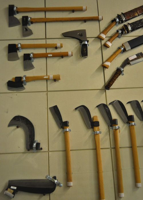 Le travail de la forge faisait aussi partie de l'artisanat de la préfecture de Kumamoto (photo ci-dessous). Les forgerons étaient nombreux dans les villages pour confectionner les outils nécessaires à l'agriculture. Ils travaillaient à demeure ou se déplaçaient sur place. Deux types de forgerons coexistaient: Les No Kaji (forgerons qui produisaient des outils agricoles) et les Katana Kaji ( qui réalisaient les épées pour les guerriers samouraïs). Jusqu'à la période Showa (1962-1989), les forgerons itinérants étaient surtout concentrés dans la ville d'Hitoyoshi. Au final, la région produit des couteaux solides et de précision utilisés dans l'agriculture mais aussi dans les pêcheries ou dans l'industrie forestière.