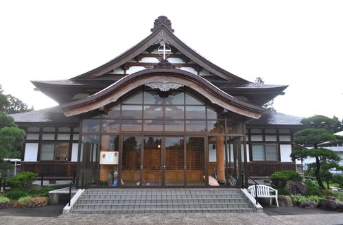 Pour vous rendre à Yuzawadai: Emprunter un bus au départ de la gare routière (en face de la gare JR), quai N°4. Renseignez-vous bien si le bus s'arrête à l'arrêt: Yusawa. Plusieurs bus passent à cet arrêt. Durée du trajet: 20 minutes. Prix: 380 yens. En descendant à l'arrêt Yusawa, suivre immédiatement sur votre gauche la pancarte indiquant: Seitai Hoshikai. La petite route fait des virages mais continuez jusqu'à apercevoir sur votre droite une autre petite route en béton et très ombragée, qui monte fortement. Empruntez-la et continuez tout droit. Au bout de dix minutes de marche, vous trouverez l'église (qui ressemble bizarrement à un temple bouddhiste surmonté d'une croix ( voir photo), mais c'est ainsi!). Vous y êtes!