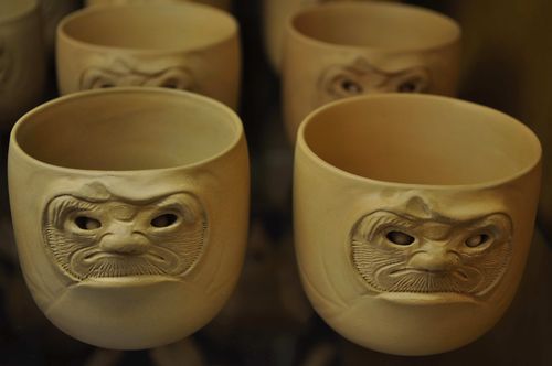 Je terminerai cet avant-goût de l'artisanat local à Akita par les poteries. Les poteries Yaki ( photos) offrent des figures grimaçantes et drôles à la fois. Il s'agit d'une poterie toute simple et sans émaillage. Sa spécificité réside dans la gravure de motifs et formes en trois dimensions. Plus elles vieillissent et plus elles prennent de la patine.