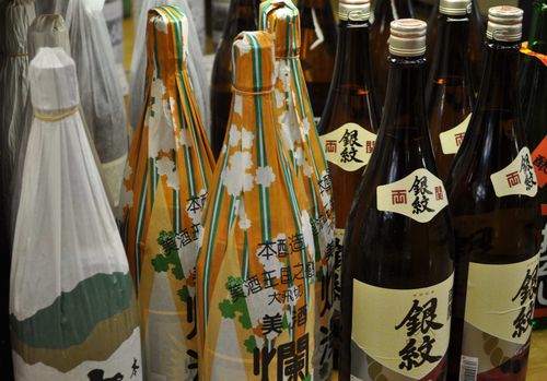 Un autre lieu incontournable pour qui veut découvrir les spécialités d'Akita et de sa région est le Akita Prefectural Goods Plaza (Centre préfectoral des produits d'Akita) situé en centre ville, non loin du marché que je viens de parcourir. On peut y découvrir tous les produits locaux qu'ils soient comestibles ou non. Je me dirige rapidement vers le rayon alimentaire car j'ai entendu dire beaucoup de bien sur la qualité du riz d'Akita. On en trouve d'ailleurs actuellement en vente dans des stands par sachets de 5 et de 10 kg (4800 yens). Mon bagage est déjà trop plein cette fois et je me vois mal porter mon sac sur l'épaule. Différents plats locaux caractérisent la cuisine de la région: Le kiritanpo (photo) est un plat composé de riz nouveau accompagné de brochette en bois de cèdre du Japon. On agglomère le riz autour de ces brochettes afin d'en faire des gâteaux qui sont ensuite dégustés avec des légumes ( dont des champignons) comme le radis fumé (natazuke). On trouve aussi d'autres plats comme le Inaniwa Udon (nouilles sèches) et le gakko (légumes vinaigrés). Pour arroser le tout, Akita vous propose un choix exhaustif de sakés qui s'explique par l'abondance de riz dans cette partie du Japon et par les hivers rigoureux qui y règnent ( Cf; reportage sur la fabrication du saké à Kobé). Ici, on compte une cinquantaine de brasseurs de saké(photo ci-dessous). A la vôtre!