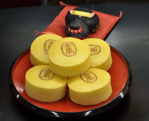 Il y a aussi ces petites pâtisseries surnommées Kinman. Ce sont les gâteaux souvenirs de la ville (beaucoup de villes japonaises vendent leurs biscuits spécifiques) fabriqués à Kinman Honpo , un endroit tout proche de la gare. L'intérieur est fourré d'un pâte de haricot blanche. Les autres ingrédients sont de la farine, des œufs, sucre, miel et levure. Je vous les conseille, elles ont l'air délicieuses et magnifiquement emballées (photo ci-dessous) mais mieux vaut les consommer fraiches.