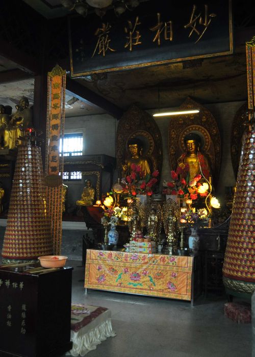 Temple Hualin Si, ouvert tous les jours de 8h00 à 17h00. Entrée libre. Photos autorisées. Informations en anglais. Métro: Changshou Lu.