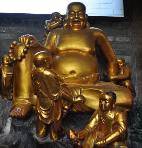 Lors de la Révolution culturelle ( un accident de l'histoire selon moi) dans les années soixante, le hall fut détruit ainsi que toutes les statues s'y trouvant. Il faudra attendre les années 1990 pour que soit reconstruit le lieu et qu'on remette des arhats. Le temple est depuis lors réouvert au public.