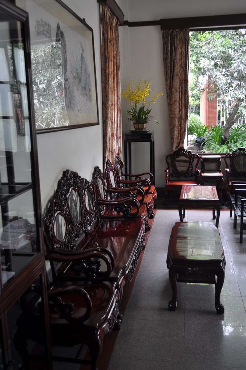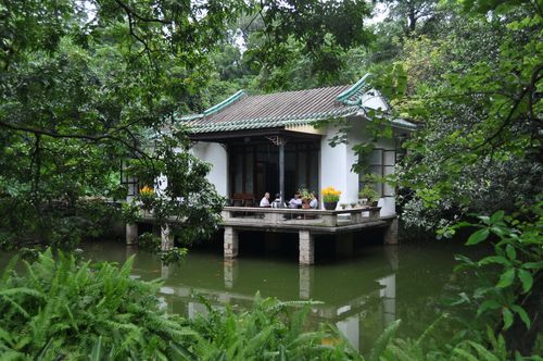 Il y a un très joli jardin des Orchidées à Canton (du moins lorsqu'il est fleuri). Je m'y rends, histoire de me mettre au vert. Plus de 200 variétés d'orchidées (10000 pots) y sont présentées ainsi que d'autres plantes exotiques. La promenade est libre à l'intérieur de ce parc de verdure qui couvre près de 4 hectares en plein centre ville. C'est un poumon vert fort agréable, et relativement reposant qui vous fera traverser cours d'eaux,bassins,collines et forêt. Des pavillons sont répartis ici et là dans tout le parc. Le Pavillon du thé (photos ci-dessous) est remarquable et vous permettra de faire une halte autour d'une tasse de thé servie selon la tradition chinoise.