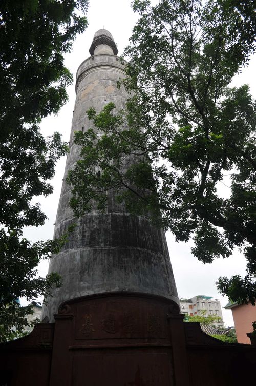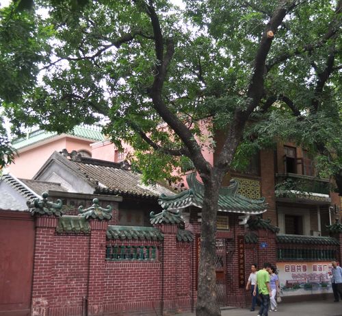 Je me rends ensuite à la mosquée de Huaisheng, l'une des plus anciennes mosquées au monde (photo ci-dessous). Elle fut construite il y a 1300 ans environ par Shabi Sad ibn Abi Waqqs et est aussi connue sous le nom de « mosquée phare » à cause de son minaret (appelé aussi Tour lumière) de 36 pieds de haut (deuxième photo). Elle fut reconstruite à plusieurs reprises (en 1350 et en 1695) durant son histoire et reste la principale mosquée de Canton. On pense que Canton ( en tant que port de commerce important autrefois tout comme Quanzhou et Yanzhou) vit ses premières mosquées érigées à l'époque de la dynastie Tang ou dans les premières années du règne des Song. Je regrette de ne pouvoir entrer, mais l'accès est réservé aux Musulmans (un panneau l'indique à l'entrée).
