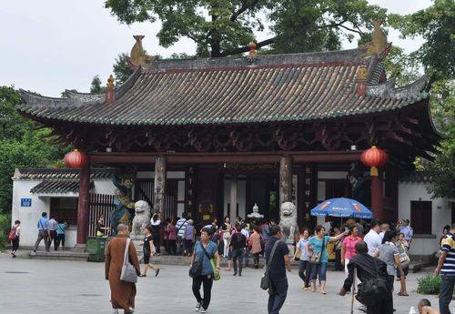 De nombreuses reliques historiques et culturelles sont disponibles parmi lesquelles le Hall Mahavira (photo ci-dessous) qui fut construit sous la dynastie Jin orientale. Le Hall Mahavira est traditionnellement le Hall du « Grand Héro » (l'un des trois halls principaux) qui se trouve à l'intérieur d'un temple bouddhiste et le Temple de la Brillante Piété Filiale ne fait pas exception. Là se trouve le bouddha historique accompagnés de bodhisattvas. Des fidèles viennent y prier et y déposer des offrandes ou faire brûler des bâtons d'encens. Je pénètre dans le Hall pour observer quelques instants ces femmes et hommes mais je ne prends aucune photo. Ce lieu semble sacré et je ne veux pas choqué. Un chant continuel est perceptible dans le bâtiment qui contient d'énormes statues dorées.