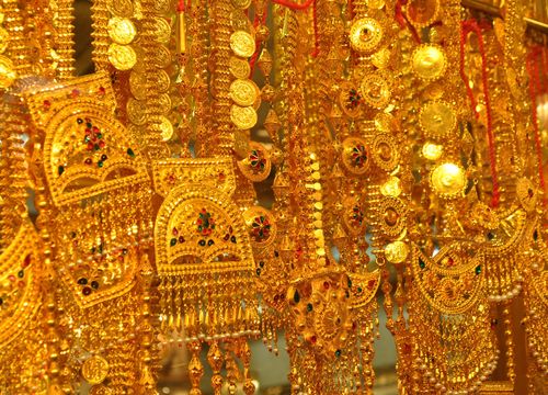 Me voici donc ce matin dans les rues de Doubaï, le premier port des EAU (Emirats Arabes Unis). La cité compte plus d'un million d'habitants mais on ne le dirait pas car ce dimanche est aujourd'hui un jour férié et la ville brille par son calme et son soleil ardent. Fondée au XVIIIè siècle, c'est d'abord un simple bourg ( et un émirat portant le même nom). Aujourd'hui, DoubaÏ est devenue une grande ville divisée en deux parties: Deira au nord et Bur Dubaï au sud. Je suis hébergé dans le quartier de Deira, non loin du marché de l'or. Ce sont ces souks que je vais vous faire découvrir bien que beaucoup de boutiques soient fermées en ce jour de fête. Doubaï est une des capitales mondiales du shopping et ses souks sont populaires. La ville organise d'ailleurs chaque année, pendant un mois, le Shopping Festival , et ce, depuis 1996. Le souk le plus célèbre de la ville est peut être celui de l'or (photo ci-dessous). Des vitrines scintillantes regorgent de bracelets, lingots, boucles d'oreilles ou colliers . On y trouve aussi des objets plus traditionnels: Chapelets de prière, sabres et figurines en pierre à savon.