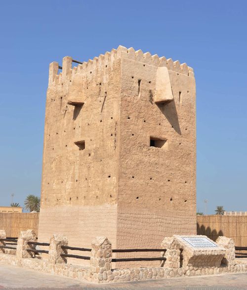 Quelques instants plus tard, je débarque à la station de Bur Dubaï. Avec l'idée de me promener en direction de la crique qui était autrefois un simple village de pêcheurs. Je passe devant le ministère des finances de Doubaï (juste à côté de la banque HSBC) qui paraît bien petit à côté de notre monumentale construction de Bercy. Quelques mètres plus loin, la tour de guet Al Shandagah ( photo ci-dessous) se dresse fièrement devant moi. Elle fut construite en 1939, et restaurée en 1994 par la municipalité. Les tours de ce genre étaient courantes autrefois afin de voir arriver l'éventuel assaillant.