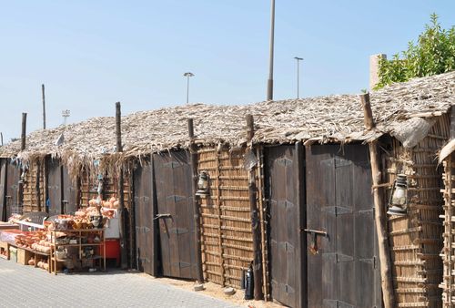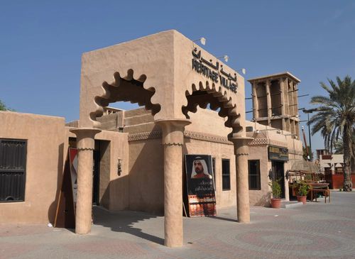 Une centaine de mètres plus loin, j'aperçois le Heritage Village: Ce lieu est une reconstitution d'un village de montagne typique au milieu d'un oasis. On y trouve des maisons construites en boue, et des palmiers. Un fort surmontée d'une grande tour domine le village. Parmi les sites remarquables sur place se trouve une mosquée d'il y a 200 ans, et Al Husen Majlis ( endroit où le chef du village accueillait ses hôtes) avec a salle de conférence, son armurerie et les appartements du chef du village. Les touristes pourront se reposer sur place dans des endroits spécialement aménagés en dégustant café et dattes. L'Heritage Village est un lieu d'histoire du passé maritime des émirats, de l'architecture locale et de la pêche perlière. On le surnomme aussi Hatta Village et l'endroit nous fait replonger 200 à 300 ans en arrière: Ce village , construit à l'entrée de la crique de Doubaï, est considéré comme le plus ancien village de la région avec ses fortifications et sa trentaine de maisons. Les deux tours nord et sud des fortifications étaient destinées à protéger les lieux d'attaques éventuelles et furent érigées dans les années 1880 alors que le Cheik Hasher Bin Maktoum Bin Butti était gouverneur de la ville. Le visiteur est convié à visiter des quartiers de vie et à découvrir ainsi la vie quotidienne et sociale des habitants de l'époque au travers de l'artisanat local.