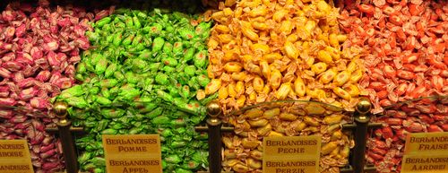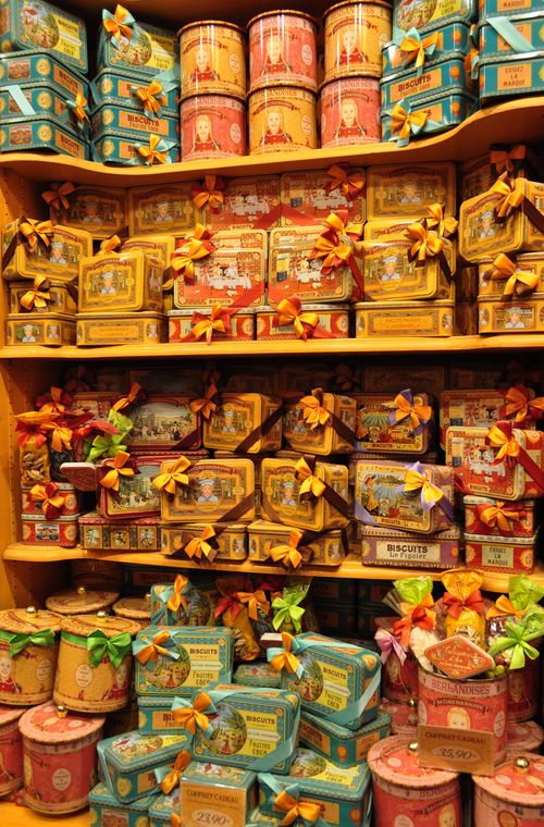Nous nous arrêtons ensuite à La Cure Gourmande, une boutique de friandises où l'on retrouve l'émotion affective du produit d'antan. Créée en 1989 à Balaruc les Bains, cette boutique produit des biscuits artisanaux. On y trouve entre autres les berlandises (photo ci-dessous) , des bonbons fourrés à la pulpe de fruits, mais aussi des choupettes (sucettes méridionales), des chocolats, des caramels et des calissons. Ne manquez pas les merveilleuse boites en métal, décorées et patinées à l'ancienne (photo) selon une tradition du début du XXè siècle.