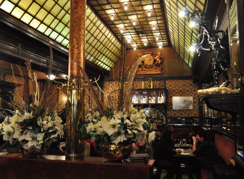 On nous avait conseillé de nous rendre dans une vieille taverne bruxelloise, non loin de la Grand Place: Le Cirio. Fondée en 1886, ce lieu servait de magasin de détail et de salon de consommation des spécialités italiennes de Francisco Cirio. Son usine de produits était basée à Turin et un train spécial livrait les produits jusqu'aux magasins. Il y avait autrefois 18 magasins de ce type en Europe ( dont Saint Petersbourg, Mosou, Zurich, Paris et Bruxelles). L'établissement bruxellois est seul survivant . A l'intérieur de la salle (qui ressemble un peu à un musée), on peut observer certaines des médailles obtenue par Francisco Cirio lors d'expositions et de concours. Les toilettes valent aussi le détour. Le décor est original et réalisé dans le style italien. Il n'y a désormais plus de magasin de détail mais uniquement un salon de consommation plus étendu et l'accueil des serveurs est largement à la hauteur. Cette taverne est l'un des établissements les plus anciens de la ville, fréquenté par les touristes et les habitués. On y déguste le Half and half (boisson constituée pour moitié de mousseux italien spumante, et moitié de vin blanc italien), mais aussi la Carbonnade Flamandes (plat en sauce fait de morceaux de boeuf et de pommes de terre) ou le Waterzooi (plat en sauce à base de poulet).