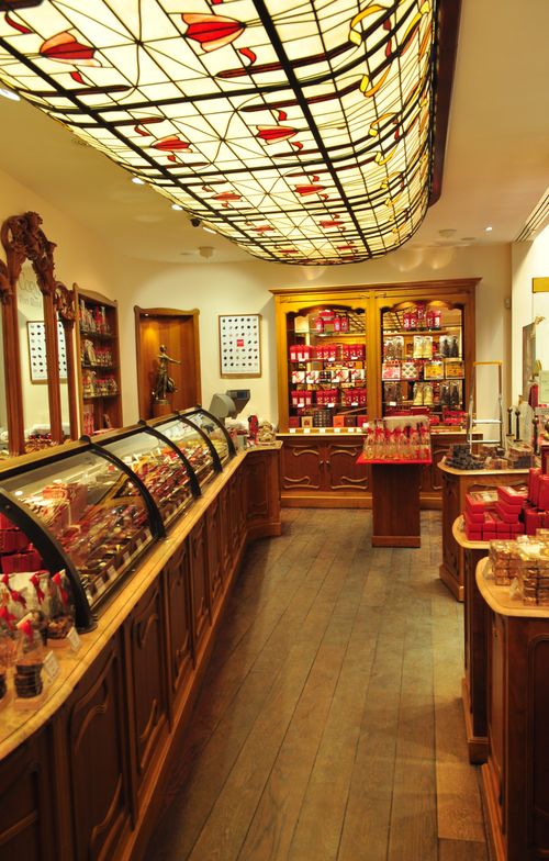 La Galerie Royale Saint Hubert se trouve aussi dans le centre ville , à deux pas. Elle forme un passage commercial couvert avec des arcades vitrées et est constitué de trois parties: La Galerie de la Reine, la Galerie du Roi et la Galerie des Princes. Elles sont l'oeuvre de l'architecte Jean Pierre Cluysenaar et furent inaugurées en 1847. La Galerie du Roi abrite le Théâtre royal des Galeries, alors que la Galerie de la Reine accueille le Théâtre de Vaudeville qui fut inauguré en 1884 sous le nom de Casino Saint Hubert. Nous retrouvons sur place la Maison Corné Port Royal (photo ci-dessous) avec sa superbe boutique de chocolats et de biscuits emballés dans de très belles boites en métal. A proximité, je découvre aussi la Manufacture belge de dentelles, une boutique entièrement consacrée aux ouvrages de dentelles (photo), autant d'idées de cadeaux à l'approche des fêtes.