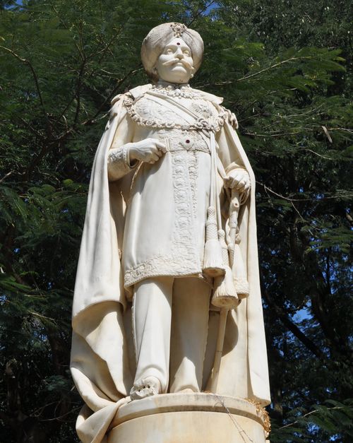 L'histoire de ce parc est riche, de par la variété de sa flore, de sa végétation mais aussi à cause des nombreux monuments et statues de personnages célèbres qui s'y trouvent. Il fut d'abord appelé « Meade's Park » (du nom de John Meade, commissaire par intérim de Mysore en 1870), avant d'être rebaptisé « Cubbon Park » ( en hommage à un autre commissaire plus âgé, Sir Mark Cubbon). Mais en 1927, on changera le nom du parc pour lui donner celui de « Sri Park Chamarajendra », à l'occasion de la commémoration du jubilé d'argent de la loi de Sri Krishnaraja Wodeyar dans l'état de Mysore. On célébrait ainsi la mémoire de celui qui fut , au XIXè siècle, le dirigeant de l'état de Mysore: Chamarajendra Wodeyar (photo ci-dessous). La dynastie de Wodeyar (ou Odeyar) était une dynastie princière indienne qui régna sur l'état de Mysore de 1399 à 1947. Deux frères, Vijaya et Krishna, en furent les fondateurs lorsqu'ils vinrent s'installer dans le Mysore au XIVè siècle. Le règne de cette dynastie ne sera interrompu au cours du XVIIIè siècle que par la prise de pouvoir de Haidar Ali , puis de son fils le Sultan Tipu. La dynastie Wodeyar sera réinstallée sur le trône en 1799 ( à la mort de Tipu) mais les régents britanniques détiendront le pouvoir effectif du pays à partir de 1831 ( et ce, durant cinquante années). La dynastie reprend ce pouvoir en 1881 et l'état de Mysore devient alors l'état des Indes le plus puissant. Dégagés des guerres, les princes se consacrent désormais au mécénat et Mysore devient alors le centre culturel de l'état de Karnataka . Chamarajendra Wodeyar régnera de 1868 à 1895.