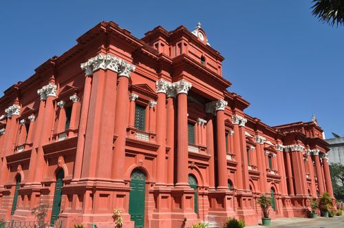 Le Government Museum ( ci-dessous) est un musée fondé en 1866. Installé dans un bâtiment néo-classique en stuc rouge orné de colonnes corinthiennes, il comporte 18 sections présentant bijoux, peintures, miniatures, sculptures, objets de Moenjodaro (littéralement le Mont des morts, site important de la civilisation de la vallée de l'Indus, où l'on trouve les vestiges d'une des plus grandes cités de l'âge du bronze indien) et vestiges du néolithique vieux de 5000 ans. Ce musée est l'un des plus anciens musées indiens. La Venkatappa Art Gallery occupe une aile du bâtiment sur deux niveaux. Cette galerie doit son nom à un artiste du début du XXè siècle, cher aux chefs wodeyar de Mysore. On y admire des aquarelles et des peintures du style de Mysore dont le revêtement légèrement vert est dû à leur finition au jade. On trouve aussi dans cette galerie une intéressante collection de marionnettes en cuir, en peaux de daim et de chèvre , ainsi que des sculptures des périodes satvahana,hoysala et vijayanagar.