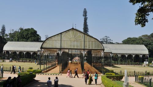 Le parc Lalbagh abrite de nombreuses attractions, dont la Glass House (photo ci-dessus), le « Crystal Palace indien » (car construit d'après le modèle du Crystal Palace londonien). Celle-ci abrite chaque année une célèbre exposition florale. Elle fut conçue par John Cameron, qui devint le superintendant des Jardins botaniques à partir de 1874.La maison de verre fut érigée en 1889 à l'occasion de la commémoration de la visite à Bangalore du Prince Albert Victor, petit-fils de la Reine Victoria, qui posera la première pierre de l'édifice. Le bâtiment sera restauré en 2004. On surnomme la Glass House « Joyau du jardin botanique » et ce monument est très cher au cœur des habitants de la cité.