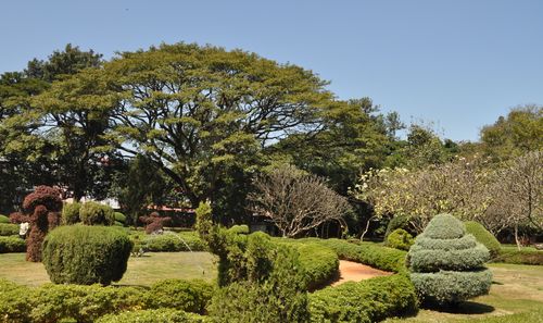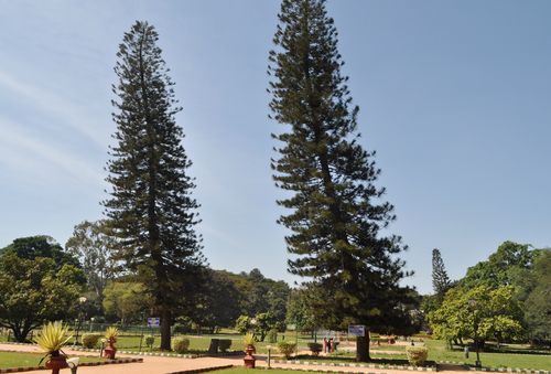 Le parc Lalbagh possède la plus grande collection de plantes tropicales de tout le pays. Hyder Ali avait décidé de créer un jardin d'après le modèle des jardins de Mughal (de l'Empire du même nom). Hyder Ali construisit le jardin et son fils Tipu y rajouta les richesses horticoles que l'on peut voir aujourd'hui. Plusieurs arbres (certains ont plus de cent ans) et plantes ( plus de mille espèces de fleurs) furent ainsi importées d'autres pays ( dont la Perse, l'Afghanistan et la France) comme ces deux magnifiques pins surnommés « arbres de Noël » venus d'Australie (photo ci-dessous). Et les jardiniers réputés de la communauté de Thigala furent mis à contribution. En 1874, le parc avait une superficie de 180 000 m². On rajouta 30 acres, puis 13 acres de terrains en 1891, y compris le rocher supportant la Tour Kempe Gowda en 1894, et on arriva bientôt à une superficie de 760 000 m². Lalbagh offre désormais aux habitants de Bangalore et aux touristes de passage un lieu de détente, ponctué d'expositions florales comme par exemple celle qui se tient le Jour de la République (26 janvier).