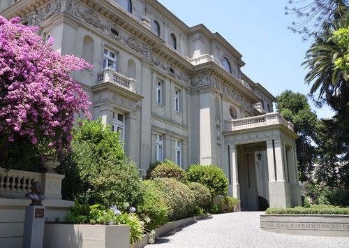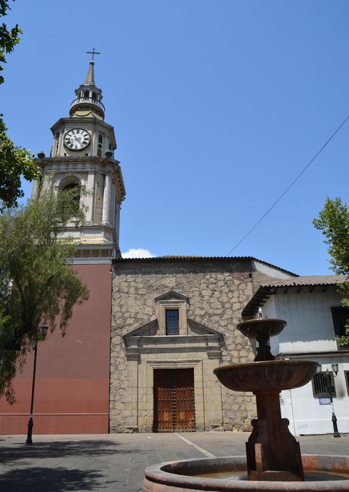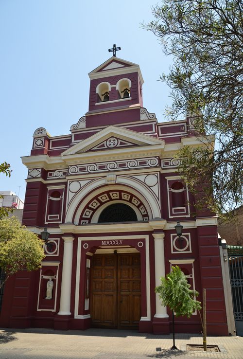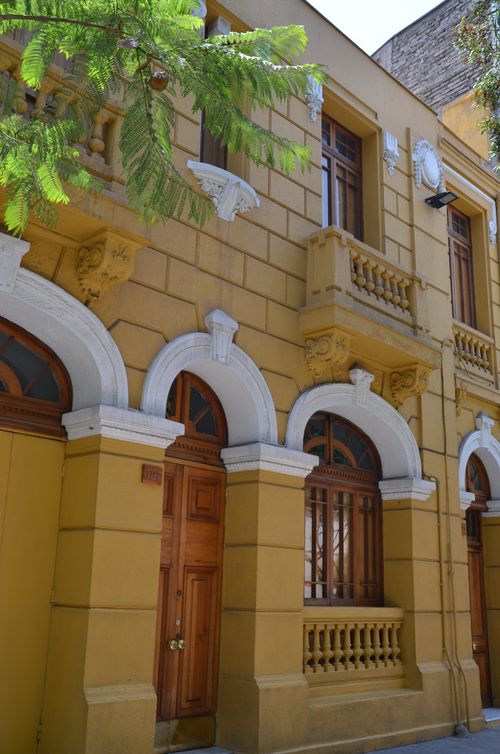 Vous aimez l'architecture? Alors suivez-moi dans le quartier de Lastarria, tout près du Parque Forestal. Ce quartier tranquille est situé dans le vieux Santiago , à deux pas de la rue Merced où je tombe en arrêt devant une vaste et magnifique bâtisse abritant la Chambre de commerce, des services et du Tourisme de Santiago du Chili ( photo ci-dessous). A cinq minutes de là, je passe devant des maisons parfois surprenantes comme cette façade jalousement gardée par un soldat de pierre (deuxième photo). Ou encore cette maison de style colonial aux murs jaunes (troisième photo). Il s'agit simplement de lever la tête pour apercevoir d'étranges mais séduisantes architectures. C'est que ce quartier de Lastarria compte, avec celui des Bellas Artes, parmi les plus anciennes parties de la capitale. Et c'est à des architectes comme Luciano Kulcewski, Ernesto Ried, ou Sergio Larrain, qui ont oeuvré dans la première partie du XX ème siècle, que l'on doit ces constructions parfois originales. Tenez, prenez l'église de Vera Cruz (quatrième photo), située elle aussi dans le quartier de Lastarria. Elle est l 'oeuvre de Claude Brunet Debaines et...de Fermin Vivaceta! Elle fut érigée entre 1852 et 1857. Un petit retour en arrière s'impose toutefois afin de comprendre les origines de cette église: En 1847, débarque un chargé d'affaires espagnol, désireux de resserrer les liens entre l'Espagne et le Chili, en perpétuant la mémoire de Pedro de Valdivia. L'église prend ainsi forme dès 1852, sous la direction de Claude Brunet de Baines, puis, à sa mort, la construction est reprise par l'architecte chilien Fermin Vivaceta. Juste à temps pour que l'édifice soit inaugurée lors des fêtes patriotiques de la même année, sous le nom d'église de Vera Cruz. L'église est équipée d'un toit à pignon, et d'une élégante façade verticale mais sobre. En son sommet, un campanile abrite deux cloches à l'intérieur de fenêtre à meneaux. L'intérieur du bâtiment abrite une simple nef qui se termine en une abside de semi coupole. Cette nef domine le temple ainsi que le christ offert au XVI ème siècle par le Roi d'Espagne.