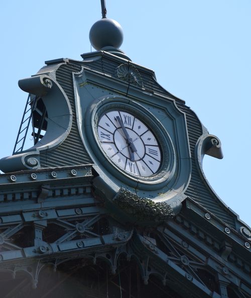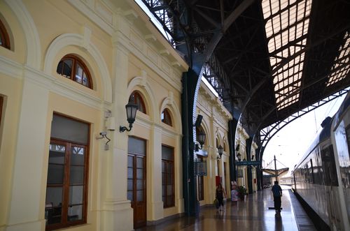 La façade avant de la gare centrale permet d'admirer encore de nos jours une magnifique horloge extérieure (première photo ci-dessous) elle-même encadrée par de superbes sculptures en acier (deuxième photo). A l'intérieur, on note avant tout la propreté des lieux (rien à voir avec les gares parisiennes de ce côté-là). Et une maquette d'une locomotive à vapeur est exposée au bout du quai accueillant les trains de la société Terrasur (dernière photo). Au Chili comme ailleurs, vive le train!