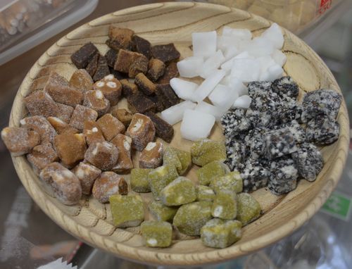 La boutique voisine de l'atelier offre une vitrine remplie de spécialités sucrées toutes fabriquées dans la région: Parmi les gâteaux de Morioka, on trouve le kinacombo, le sesami, sans oublier les mochi ( friandise très sucrée) et les dango. Le Mameginto est aussi une friandise à base de haricot. Un vrai plaisir pour les papilles des gourmands.