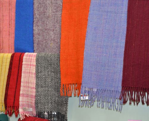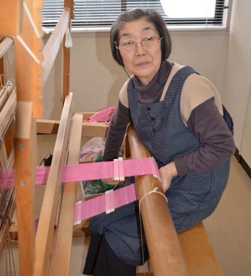 Morioka est aussi réputée pour ses activités de tissage et de teinture Nambu Kodai Katazome (première photo ci-dessus) et shikonzome (deuxième photo) sans oublier les écharpes homespuns (troisième photo). Au premier étage du magasin de souvenirs, je rencontre Madame Takahashi (quatrième photo), tisseuse de son état depuis maintenant quarante ans. Cette dame nous fait une démonstration de tissage d'une pièce de tissu utilisée comme sous-tasse(sakiori) au Japon ( voir vidéo dans la section Médiathèque). La laine provient souvent de Nouvelle-Zélande, est tissée puis teintée avant de devenir des pièces de tissus ou des écharpes ( dont le savoir-faire date de plus de cent ans). C'est qu'il fallait se rendre utile durant la guerre 1945: Les hommes étant tous partis au combat, les femmes mirent leur temps à profit pour exercer ce qui est devenu aujourd'hui un artisanat à part entière. Je sacrifie à la tradition et m'offre une de ces superbes écharpes, qui me protègera du froid durant mes pérégrinations nippones.