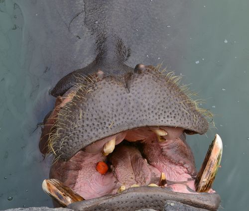 Notre troisième étape nous conduit à Yama-Jigoku (Enfer de la montagne, une montagne de boue qui s'est formé au fil des ans!)(première photo ci-dessous). Là, des fumeroles jaillissent du sol tout chaud (il suffit de toucher les pierres pour en juger) et créent ainsi un microclimat tropical qui permet la croissance de plantes et la présence d'animaux aimant les climats chauds dont les flamants roses (deuxième photo), les lamas, un hippopotame à la dentition irréprochable (troisième photo) que les visiteurs nourrissent avec des rondelles de carottes d'où cette gueule souvent ouverte (oh, le gourmand!), et même un éléphant venu d'Afrique. Ce mini-zoo est une attraction touristique de choix pour les nombreux touristes.