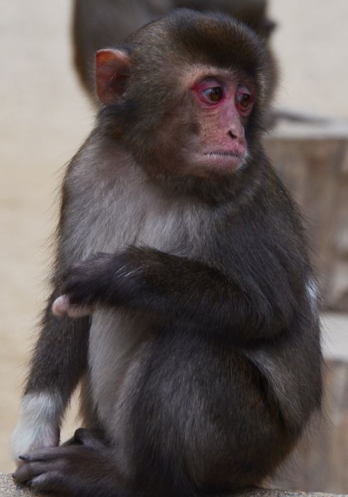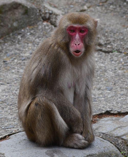 Le macaque japonais (Macaca Fuscata) est une espèce faisant partie des primates. Vivant sur de nombreuses îles du Japon, c'est la plus septentrionale de toutes les espèces de macaques et même de primates, l'homme excepté. C'est l'espèce qui est la mieux connue car la plus étudiée. Le macaque japonais a une durée de vie qui est estimée à une vingtaine d'années. La saison des amours se situe en automne et c'est alors que leur face ainsi que leur postérieur deviennent très rouges. Et la course à l'accouplement est déclenchée. C'est à celui ( ou à celle) qui s'accouplera avec le maximum d'individus. Les bébés macaques vivront auprès de leur mère durant une période d'un an. La structure sociale de ces singes repose exclusivement sur les femelles. Qui ne quittent jamais le groupe de génération en génération. Les mecs, eux , sont plus coureurs et quittent le groupe une fois leur maturité sexuelle atteinte. Le toilettage entre macaques permet non seulement de retirer les parasites des poils (puces, tiques...) mais aussi de créer des liens sociaux entre les individus. Plus ils passent du temps à se toiletter, plus la relation est forte. Leur taille varie de 79 à 95 cms et leur poids va de 10 à 14 kilos pour le mâle, de 8 à 10 kilos pour la femelle. Les macaques japonais s'alimentent essentiellement de feuilles, fruits, baies, fleurs, écorces, bourgeons, mais aussi insectes, araignées, petits invertébrés, œufs et champignons. Ils mangent même parfois des oiseaux.