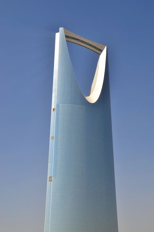 Une autre tout, la Tour du Royaume (ci-dessous) rivalise avec la précédente et reste le plus haut gratte-ciel d'Arabie saoudite. Elle ressemble à un décapsuleur planté dans le sol. D'une hauteur de 302 mètres, elle offre en son sommet un pont panoramique. Au pied de la tour se trouve un centre commercial. La tour est la propriété d'Al Walid, un prince de la famille royale saoudienne. Sa construction coûta 1,7milliard de rials saoudiens.