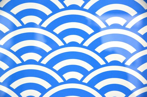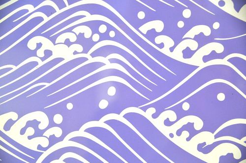 Voici la station N°10: Aomi. Son dessin représente des vagues (ci-dessous). Ce signe était utilisé pour la Bugaku durant la période Heian. Cette danse traditionnelle japonaise servit surtout à sélectionner les élites dans les cours impériales pendant plus de 1200 ans. Cette danse réservée aux classes supérieures, deviendra plus accessible après la seconde guerre mondiale et fera même un tour du monde en 1959. Ses pas lents, royaux et précis étaient exécutés par des danseurs vêtus de costumes traditionnels bouddhistes comprenant des masques. Durant la période Genroku ( milieu de l'époque Edo), Kanshichi, artisan, produisit de nombreux objets avec ce motif toujours resté à l'ordre du jour depuis.