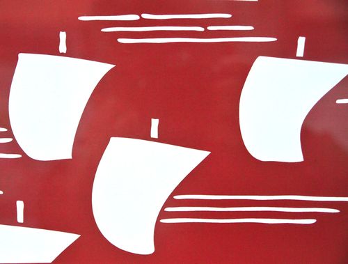 La station suivante se nomme Fune no Kakagu-kan et nous fait pénétrer dans le quartier de Koto. Son dessin représente des voiles de bateaux (ci-dessous), ces bateaux qui rapportaient les riches trésors des mers lointaines (hokakebune). Populaires sous la période Edo, ces voiles de bateaux symbolisaient les sept dieux de la bonne fortune (cette bonne fortune qui apparaissait sous la forme de pièces d'or ou d'argent mais aussi de riz). Milieu de l 'époque Edo, le dessin du Tarakabune symbolisait les dieux de la fortune et il n'était pas rare , le 1er janvier , de voir les habitants disposer sous leur oreiller l'image du Takarabune accompagnée d'un poème palindrome. Le premier rêve de l'année ainsi symbolisé était censé porter bonheur.