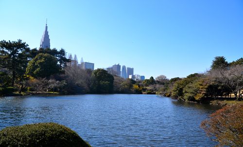 Le parc de Shinjuku s'étend sur une surface de plus de 50 hectares. Il fut achevé en 1906 , époque à laquelle il était un jardin impérial. Durant la période Meiji, il représentait l'exemple type du jardin occidental moderne. Celui-ci fut conçu par Henri Martine, horticulteur français, d'après le concept de Hayato Fukuba, lequel fut un scientifique agricole durant les périodes Meiji et Taisho. Le parc est en fait formé par trois jardins distincts: Le jardin anglais, le jardin français et le jardin japonais.
