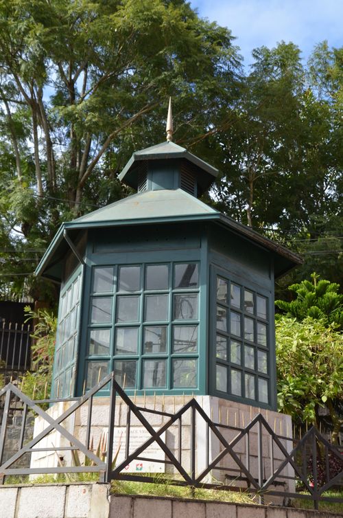 Non loin de ce belvédère, nous tombons sur une ancienne vigie de la police malgache (ci-dessous). Nous contournons le Palais de la Reine par les flancs de la colline et nous arrêtons bientôt à la fontaine royale (deuxième photo):Cette fontaine sacrée est une source d'eau naturelle considérée comme purificatrice et sert de lieu de recueillement pour les malgaches animistes et traditionalistes. J'aperçois au loin , en contrebas, des zones marécageuses vertes. Benji m'apprend qu'il s'agit de cressonnières (troisième photo) et non de rizières. Nous croisons des femmes et des enfants (quatrième photo) qui se montrent timides devant mon objectif. Le peuple malgache est simplement d'un naturel réservé mais sa gentillesse est sans égal.