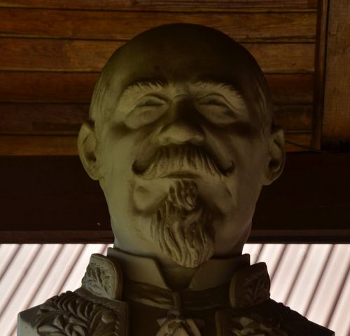 Benji et moi terminons notre promenade par la maison de Jean Laborde, ou plutôt sa reproduction fidèle (photos ci-dessous). En effet, la maison originale, une vaste et sombre maison de bois, s'écroula sous l'orage un soir des années 1980. La nouvelle construction est une reconstitution réalisée à l'initiative de la Mission Française de Coopération qui en a fait une agence de l'Alliance Française. Avec son lourd toit en bois aux avancées soutenues par de gros madriers, ses murs de planches épaisses savamment agencés, la bâtisse est élégante mais manque de ce parfum d'histoire. Mais au fait, qui était ce Jean Laborde, qui avait su gagner la confiance de la Reine Ranavalona 1ère ? Né à Auch en 1804, Jean Laborde se familiarise rapidement avec le travail des métaux grâce à son père charron. Il quitte la France à l'âge de 24 ans et s'embarque pour les Indes. En 1831, son bateau est jeté sur les côtes malgaches lors d'une tempête. Se retrouvant malgré lui à Madagascar, il propose aussitôt ses services à la Reine Ranavalona 1ère qui cherche un homme habile pour fabriquer armes et munitions. Laborde se rend d'abord à Ilafy, puis installe ses ateliers à Mantasoa où toutes les conditions sont réunies pour fabriquer les armes. En 1837, il trace les plans d'une cité industrielle qu'il baptisera « beauté immuable », puis fabriquera dans les usines non seulement les armes et la poudre mais aussi paratonnerres, briques, tuiles, savon, acides, peintures, faïences, poteries... Jean Laborde acclimate aussi sur ce même site diverses espèces d'arbres fruitiers, des bœufs de Normandie, des moutons d'Egypte et des vers à soie des Indes. Cette cité est construite de façon moderne afin d'héberger notamment les 1500 ouvriers des usines et leurs familles. Un Palais a aussi été érigé pour accueillir la Reine , avec toutes les distractions possibles (jardin zoologique abritant des antilopes, des singes, un chameau et un hippopotame,concerts, feux d'artifice, combats de taureaux,bals.... au cours desquels Jean Laborde ira jusqu'à enseigner la valse aux dames de la cour!)