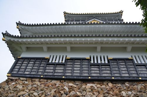 Un petit musée du château (ci-dessous) offre quelques vitrines rassemblant des objets anciens. On y trouve aussi des informations sur la période précédant l'ère Edo, mais une fois de plus, ces informations sont en japonais. C'est dommage.La visite ne prend que quelques instants et est comprise dans le prix du billet d'entrée au château. Les dimensions de ce musée sont modestes (36 mètres sur 11 mètres). Sa construction date d'avril 1975, et possède un certain charme avec ses murs blancs, ses tuiles épaisses et ses deux tourelles.